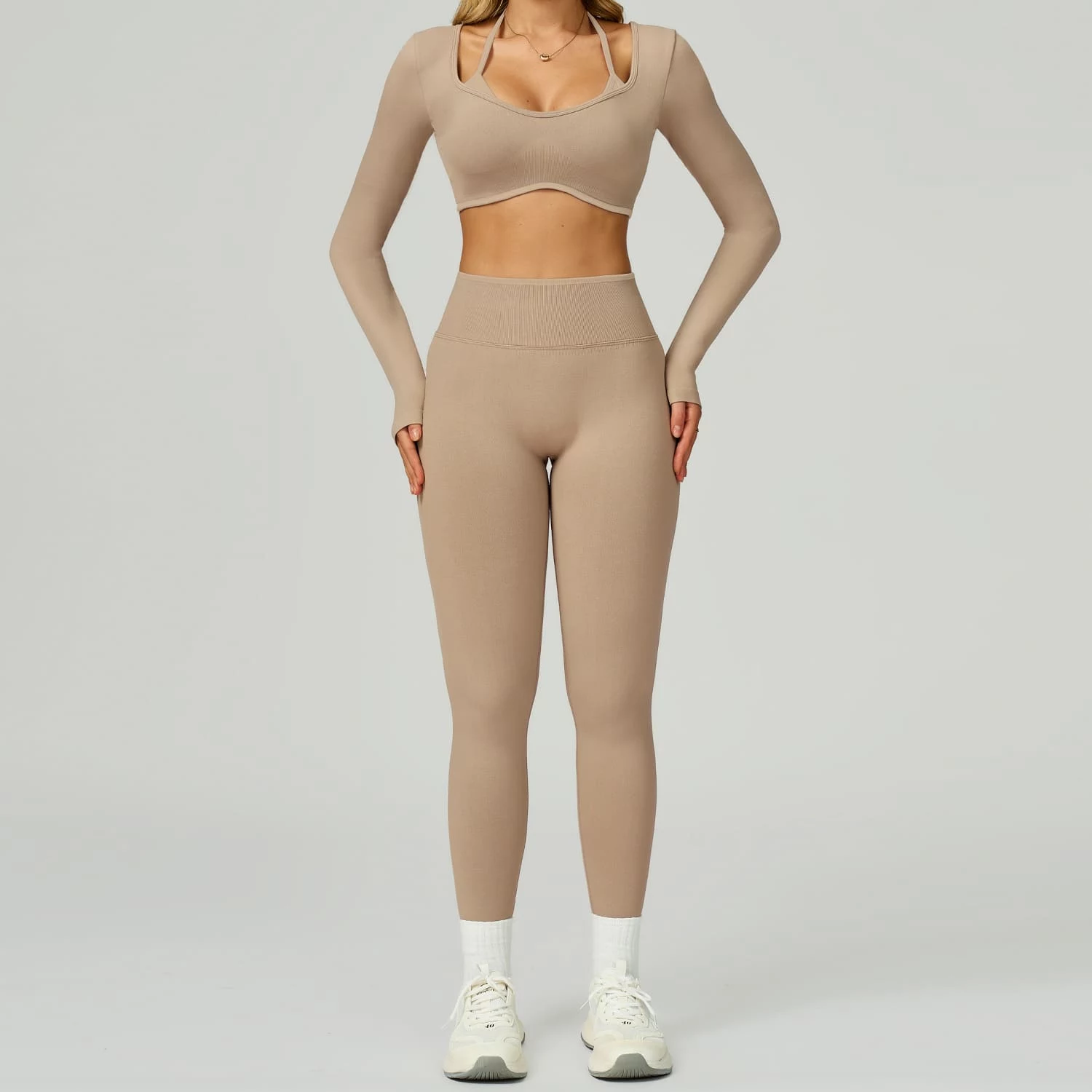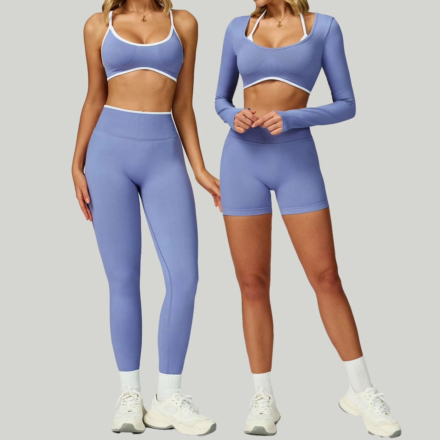 2023 مخصص لياقة ملابس رياضية تجريب عالية الخصر Activewear رياضة سلس نايلون 2 قطعة ملابس اليوغا مجموعة للنساء