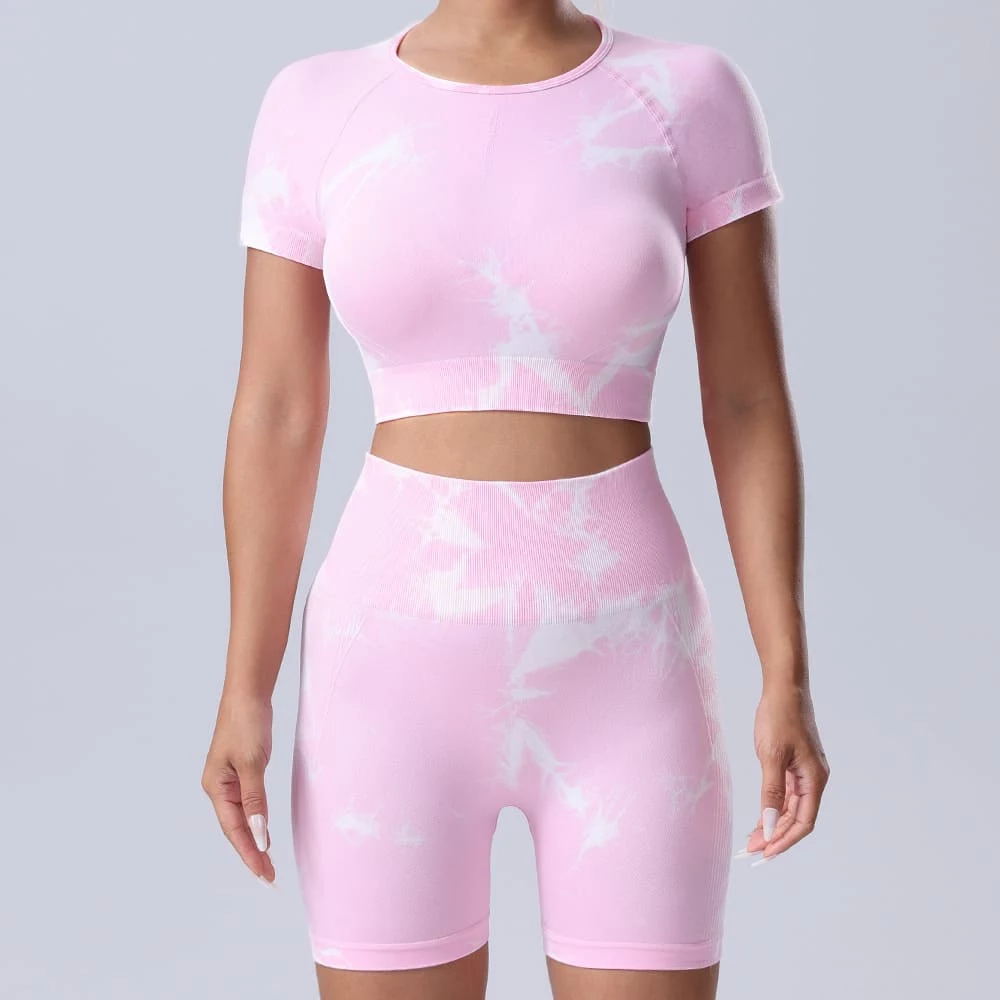 2023 مخصص لياقة ملابس رياضية تجريب عالية الخصر Activewear رياضة سلس نايلون 2 قطعة ملابس اليوغا مجموعة للنساء