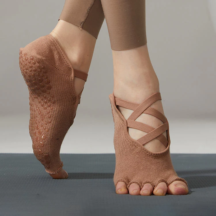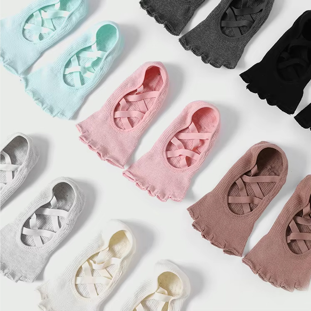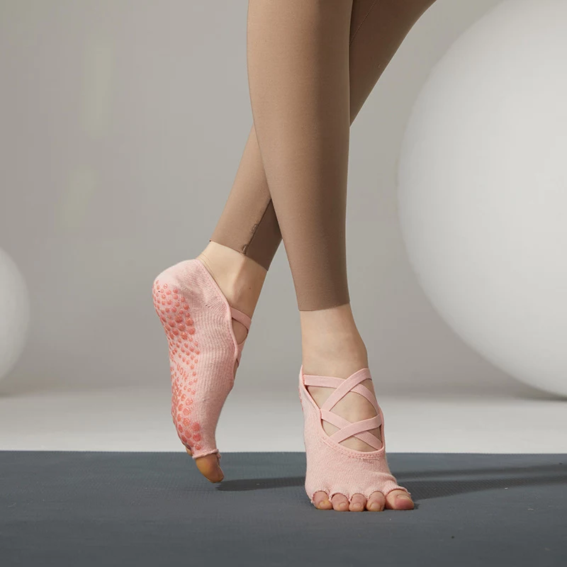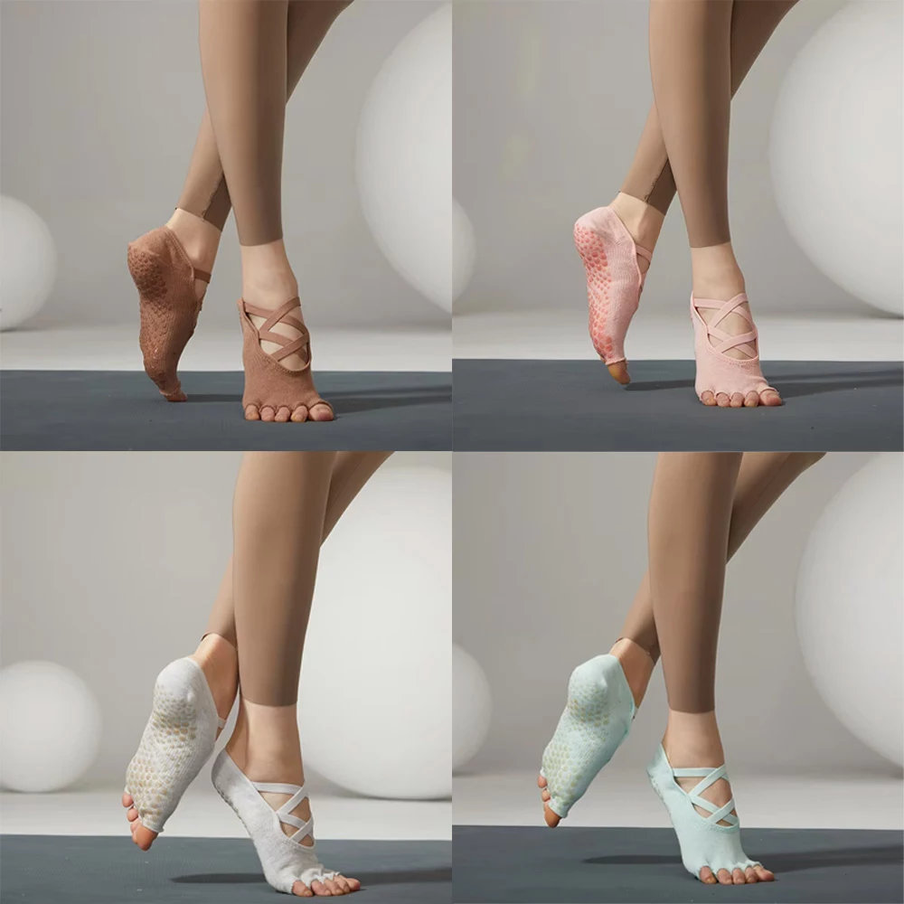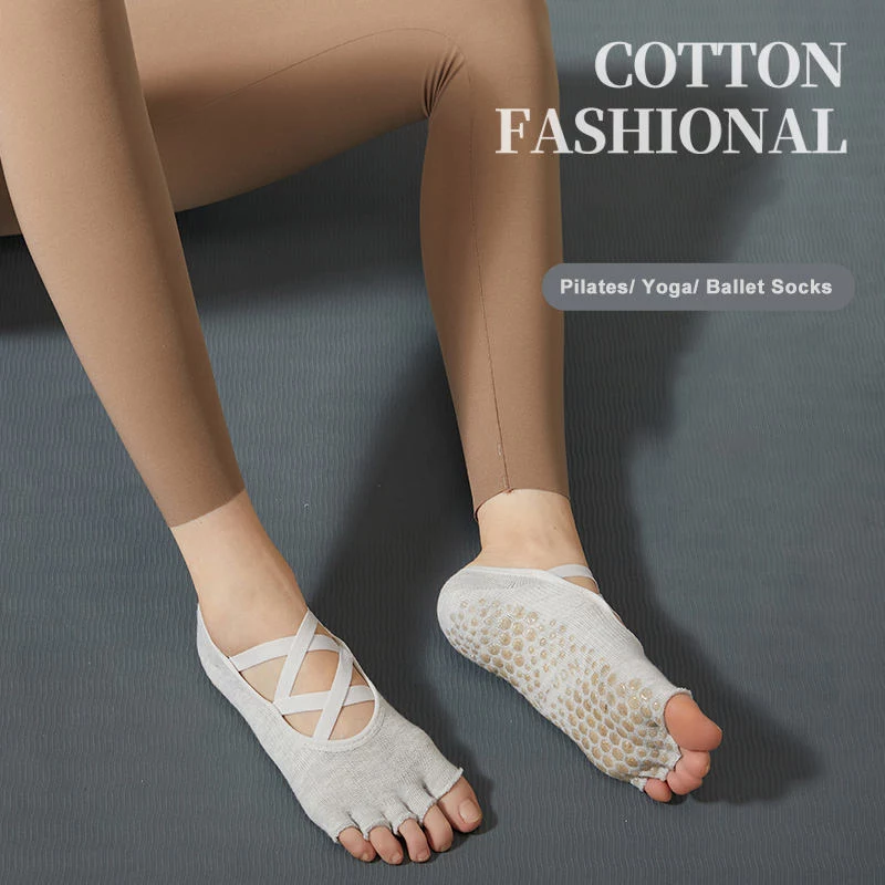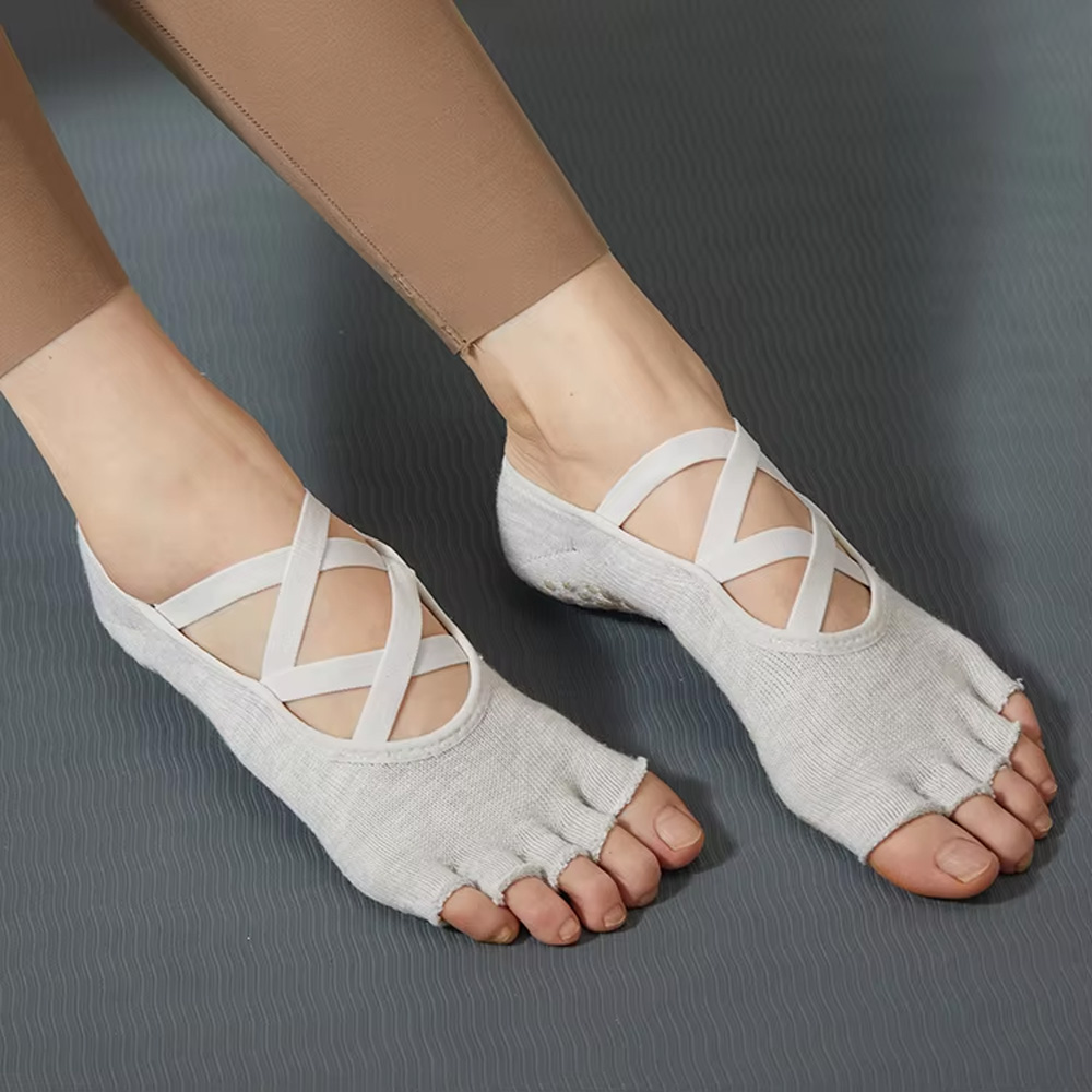 Wholesale Toeless Five Fingers Women Solid Color Cotton Backless Breathable Pilates Non-Slip Sports Yoga Socks